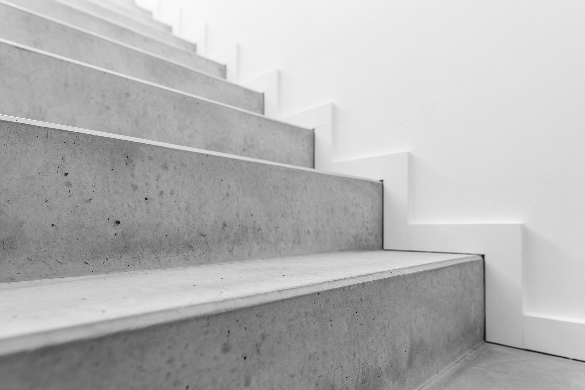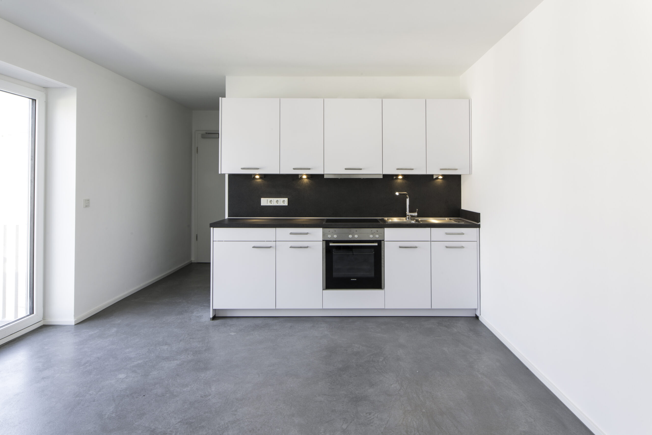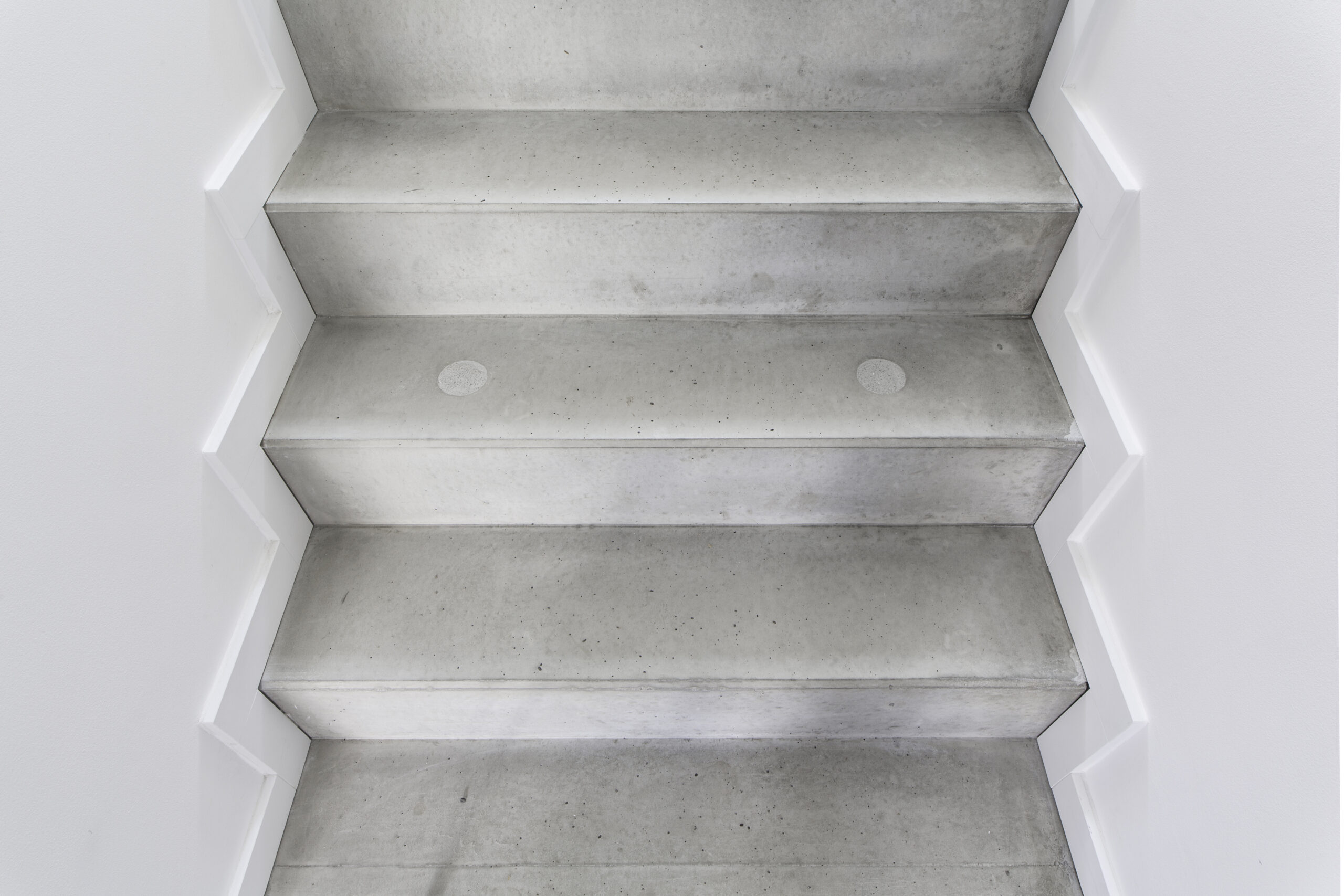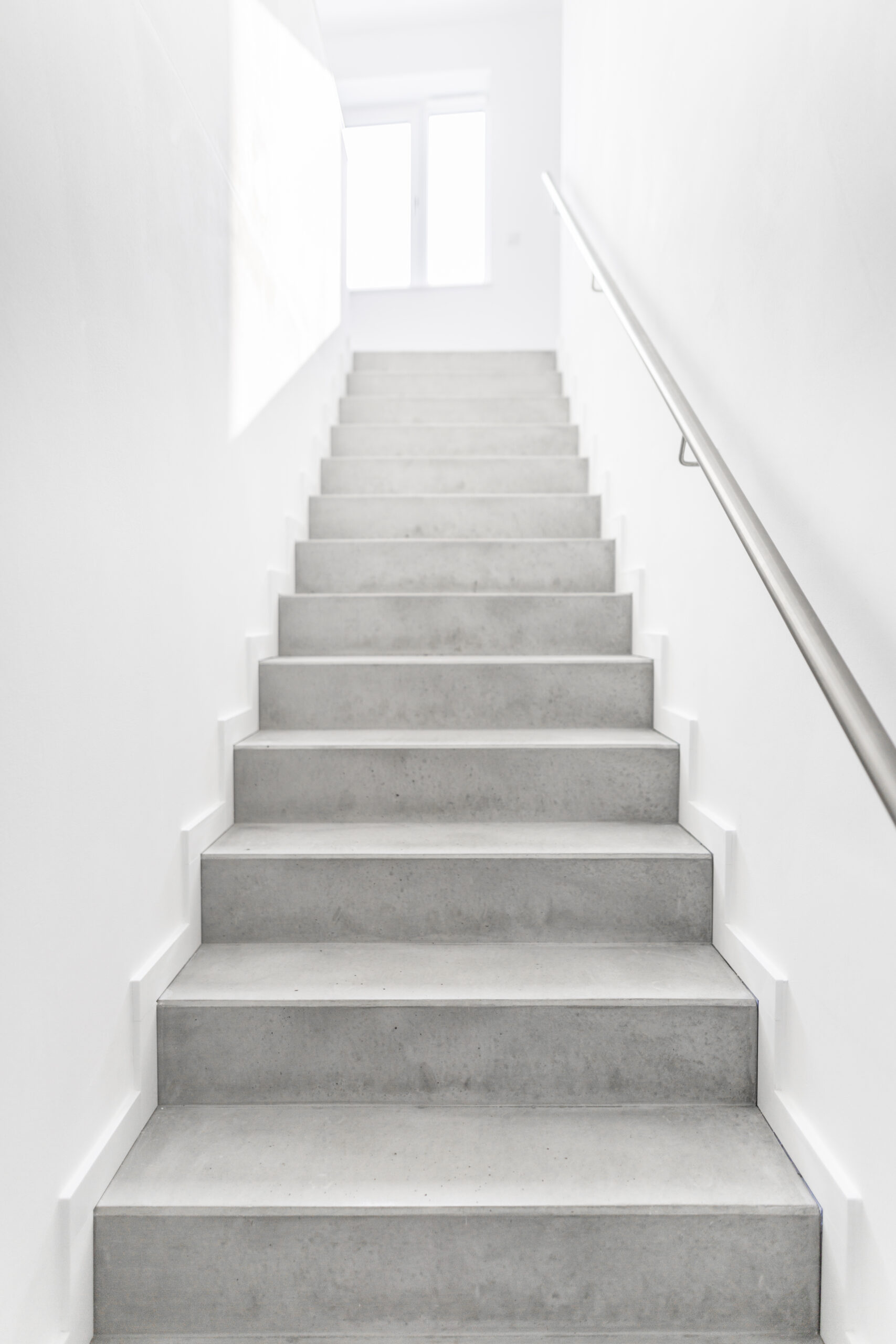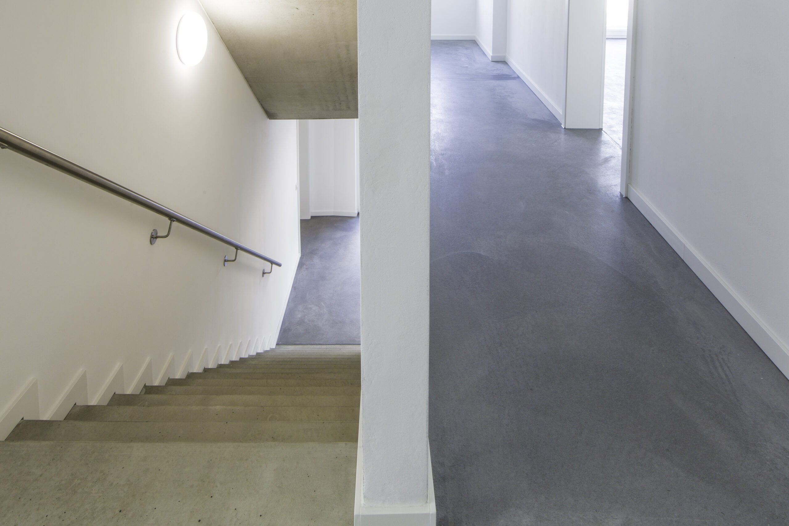Durch die Reduktion der Materialien – auf Sichtbeton und weiße Oberflächen – entsteht ein wohltuendes und klares Erscheinungsbild.
