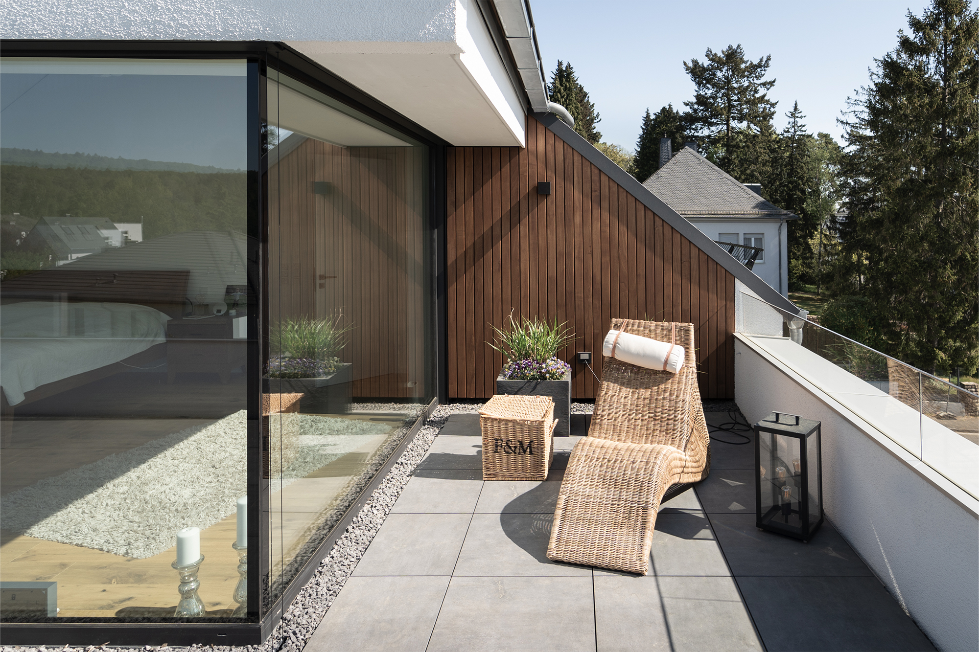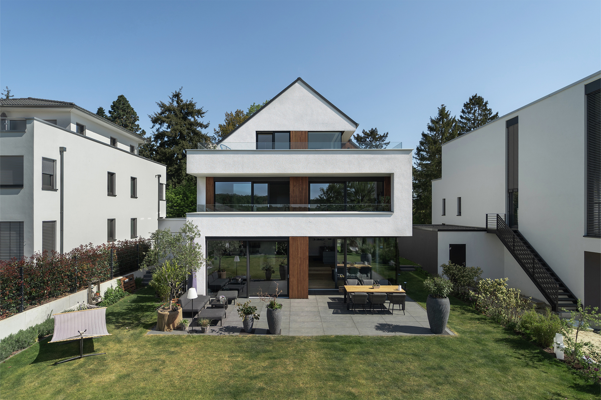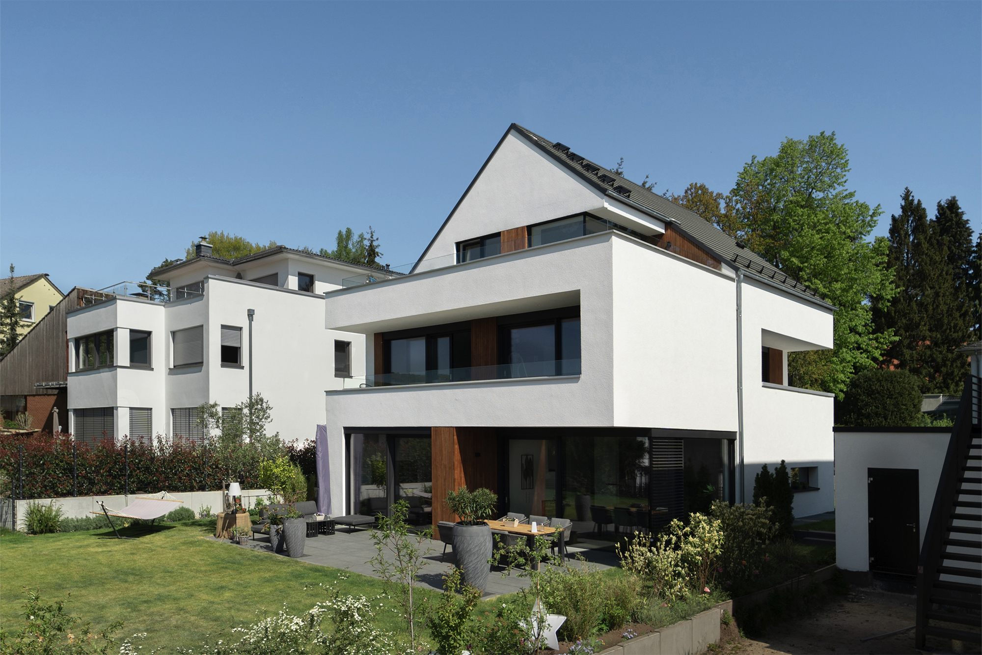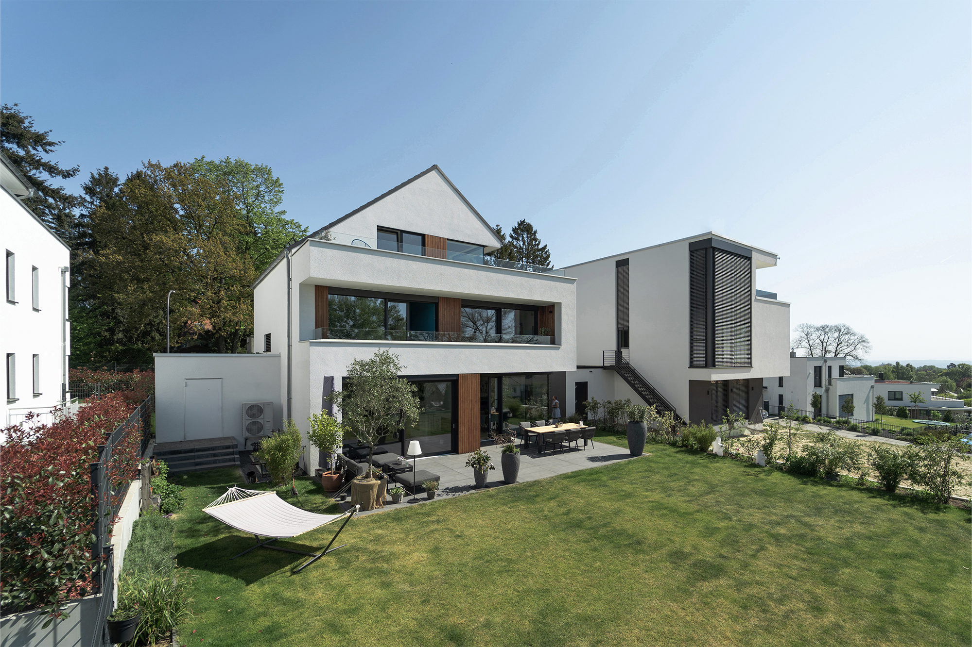 Am Rande eines Naherholungsgebiets und des Stadtwaldes gelegen fügt sich das Wohnhaus in eine Reihe von Neubauten ein.