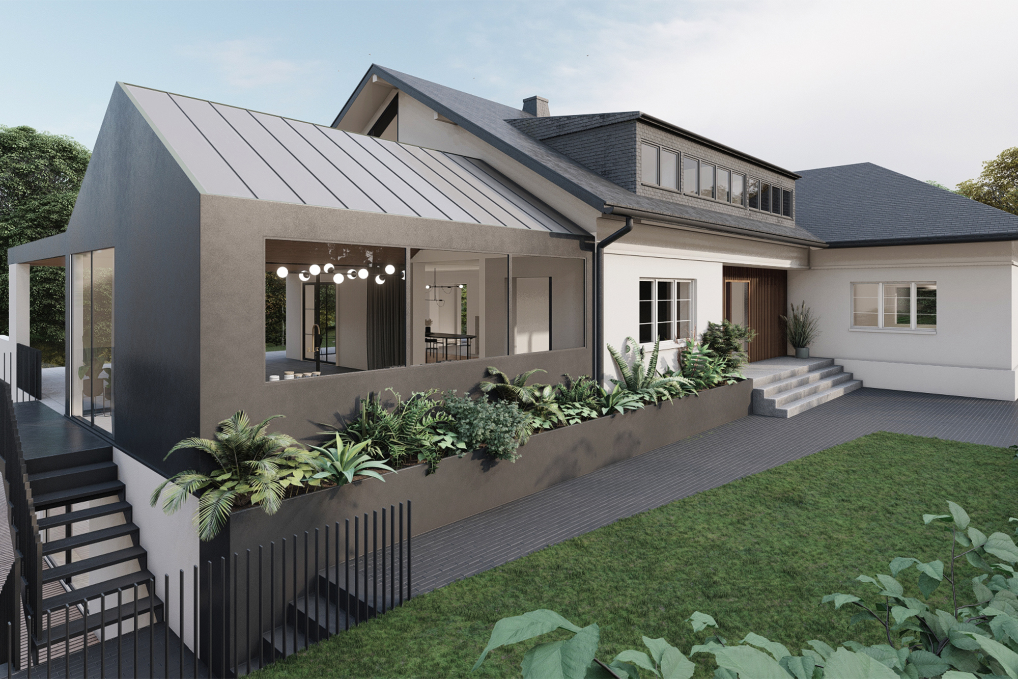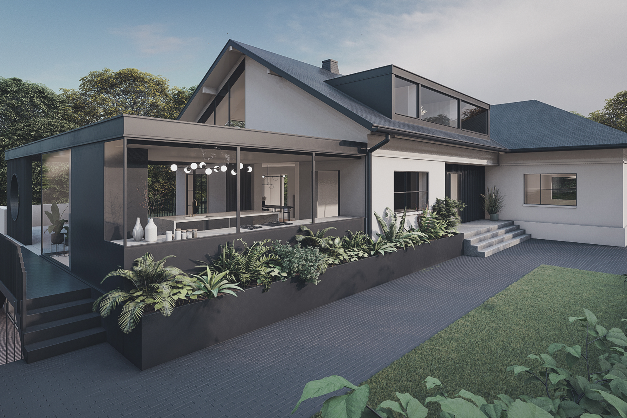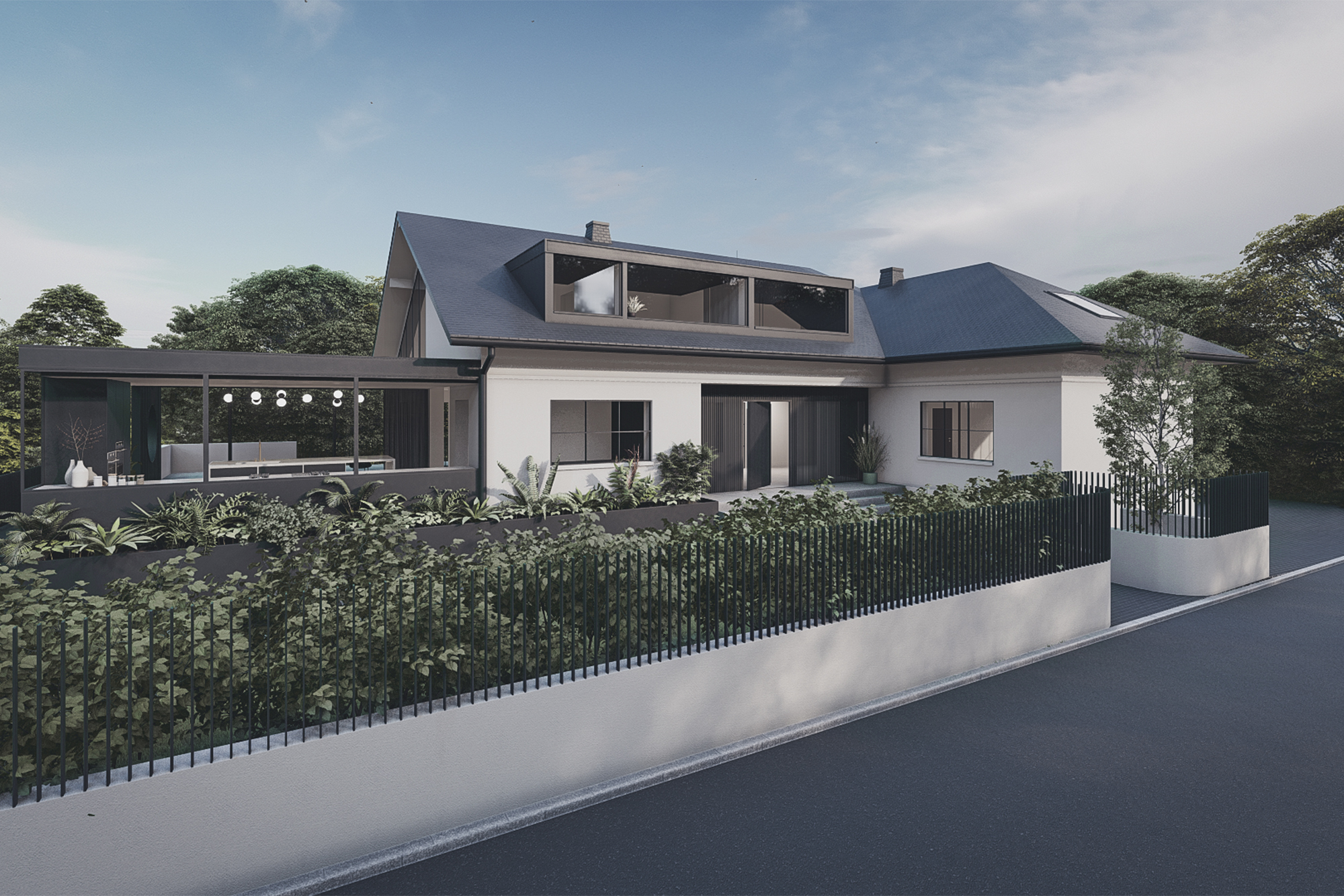 Für das großzügige Einfamilienhaus am Stadtrand von Königstein wurde ein umfassendes Modernisierungskonzept entwickelt; eine klare Architektursprache im Einklang mit traditioneller Baukultur und modernen Einflüssen überzeugte die Bauherren.